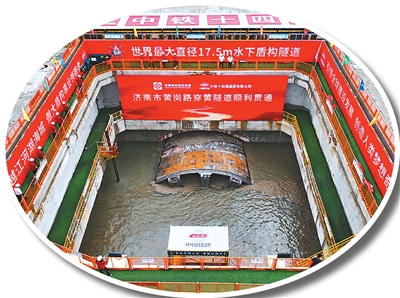 8月17日,随着开挖直径17.5米的“山河号”盾构机刀盘破洞而出,山东济南黄岗路黄河隧道盾构段掘进完成,标志着世界最大直径水下盾构隧道顺利贯通。
