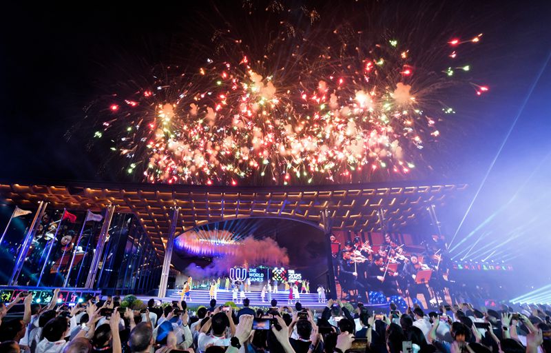 在温暖清澈的童声合唱《友谊地久天长》中,位于秦皇湖中央的世运会主火炬缓缓熄灭。文体表演舞动青春的活力,璀璨的焰火绽放夜空,将现场变成欢乐的海洋。人们心心相融,珍藏宝贵的成都记忆,诉说着不舍与祝福,期待着下一次的相聚。