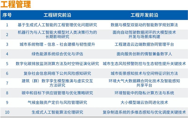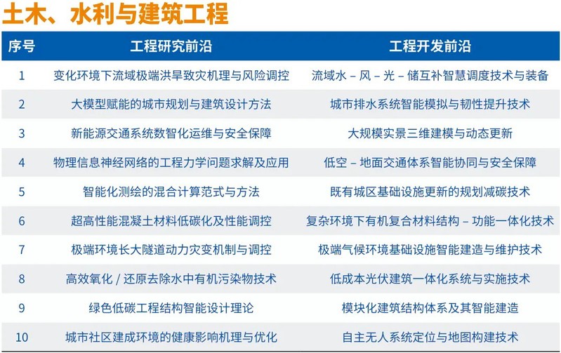 当前新一轮科技革命和产业变革加速演进,工程科技创新进入密集活跃期,工程前沿不断取得颠覆性突破。作为对工程科技未来发展有重大影响和引领作用的关键方向,工程前沿具有前瞻性、先导性和探索性的特征,是培育工程科技创新能力的重要指引。根据前沿所处的创新阶段,工程前沿可分为侧重理论探索的工程研究前沿和侧重实践应用的工程开发前沿。