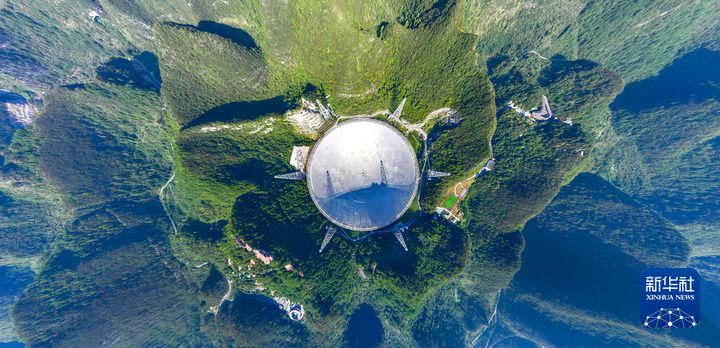 2024年9月25日拍摄的位于贵州省平塘县的“中国天眼”(无人机全景照片,维护保养期间拍摄)。新华社记者 欧东衢 摄