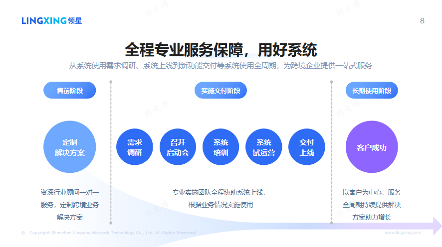 领星总部坐落于深圳,在全国30+城市设立了服务中心,构建起覆盖全国的本地化服务网络,并且建立了一套贯穿全流程的坚实服务保障体系。从前期售前阶段的资深行业顾问一对一服务,到中期实施交付阶段的标准化流程保障落地,再到后期全周期的售后保障与技术支持。同时,配备7×24小时专属客服团队实时响应,提供全链路服务支持,助力跨境企业充分释放系统价值潜能,让数字化转型真正转化为驱动业务增长的核心引擎。