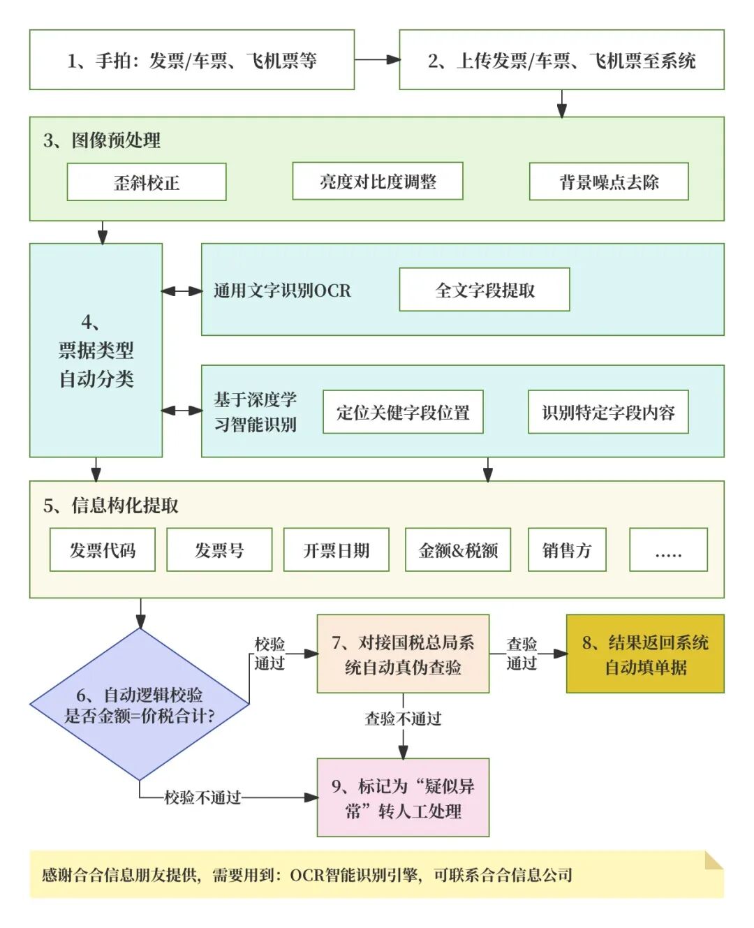员在报销过程中有:OCR智能识别引擎、RPA机器人、OA审批引擎和ERP这四个都重要技术。下面我们先介绍下OCR智能识别引擎、OA审批引擎,剩下两项技术后面有机会我们接着来细聊。