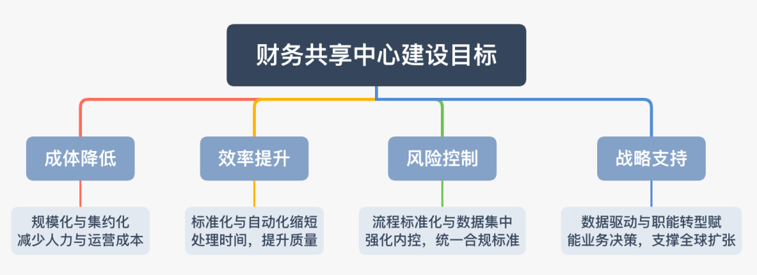 小结:中小型公司、或者业务高度分散的企业没必搞财务共享中心,毕竟这个是要真金白银投入。不过在业内有个不成文章标准:年营收≥50亿元、分子公司数量≥15家、核心流程(报销/应付/应收)差异≤20%、需强化集团管控(如统一税务/资金/预算)、财务人员占比>15%(营收占比)、已部署ERP系统、管理层明确支持财务转型。