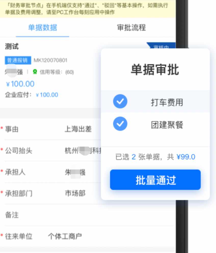 新型玩法-信用:信用分越高且报销金额在允许范围内时,审批流程节点越少、审批时效越快,甚至秒批。事后发现报销有弄虚作假、违反公司制度则会扣减信用分,严重的送交给公司内审合规部或国家公安机关。反之信用分越少,审批节点越多,审批时效越慢。