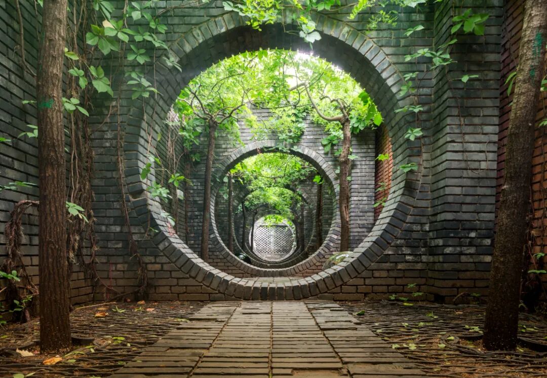 砖瓦砌成的中式融合式园林,以红砖为主色调的建筑,设计很独特,浓浓的艺术气息,展厅内陈列着许多现代艺术作品,而且后院的设计也很出彩,一处绝美的山水庭院,充满了诗情画意。