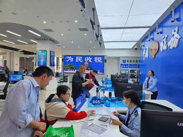 日前,在蓬溪县政务服务中心税务大厅,工作人员正在为前来办理业务的纳税人讲解最新的优惠政策,并积极为他们办理相关业务。